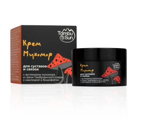 Крем «Мухомор» на основе вытяжки целебной тамбуканской грязи и мухомора создан для ухода за кожей в области суставов. Сочетание маклюры и бишофита обладает разогревающим свойством, может снимать боль в очагах воспаления и возвращать подвижность суставам.