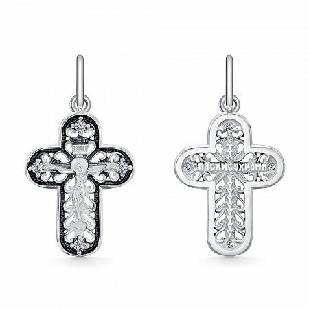 Крест из серебра литье с фианитом частичное чернение