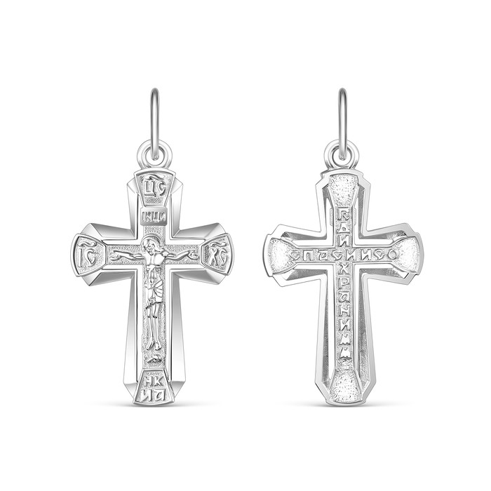Совместные покупки Челябинск Ювелирные украшения и бижутерия Подвески — Крест из серебра родированный - Спаси и сохрани 3,4 см 925 пробы К3-593р