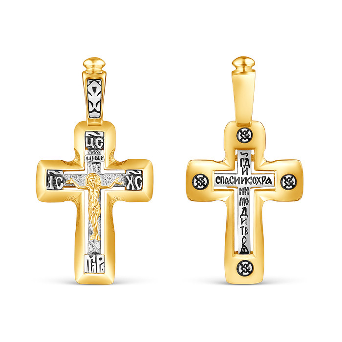 Совместные покупки Челябинск Ювелирные украшения и бижутерия Подвески — Крест из серебра с золочением и чернением - 3,3 см 925 пробы К3-649чз