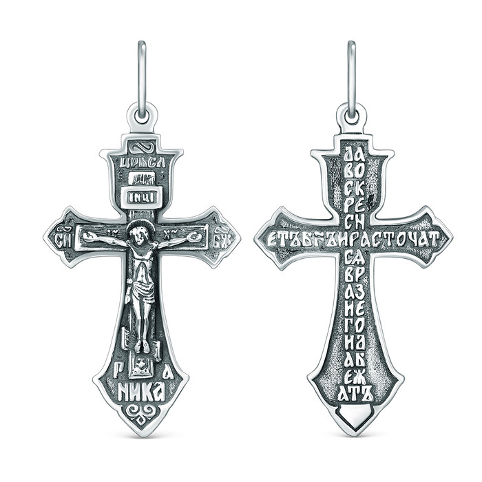 Совместные покупки Челябинск Ювелирные украшения и бижутерия Подвески — Крест православный из чернёного серебра - Да воскреснет Бог, 4,7 см К3-412ч