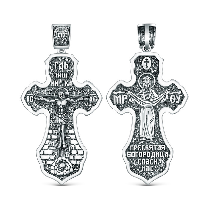 Совместные покупки Челябинск Ювелирные украшения и бижутерия Подвески — Крест православный из чернёного серебра - Покров Богородицы 4,9 см ПК-015-3ч