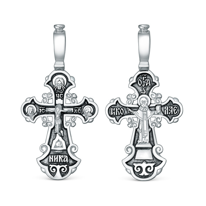 Совместные покупки Челябинск Ювелирные украшения и бижутерия Подвески — Крест православный из чернёного серебра - Распятие, Николай Чудотворец 3.3 см 92