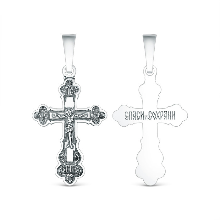 Совместные покупки Челябинск Ювелирные украшения и бижутерия Подвески — Крест православный из чернёного серебра - Спаси и сохрани 3,4 см 925 пробы 00-00