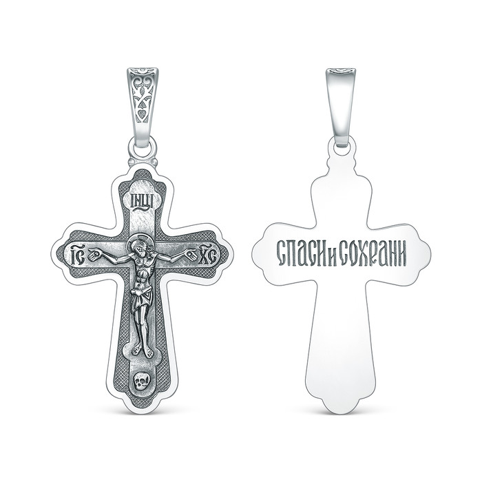 Совместные покупки Челябинск Ювелирные украшения и бижутерия Подвески — Крест православный из чернёного серебра - Спаси и сохрани 3,6 см 925 пробы 00-00