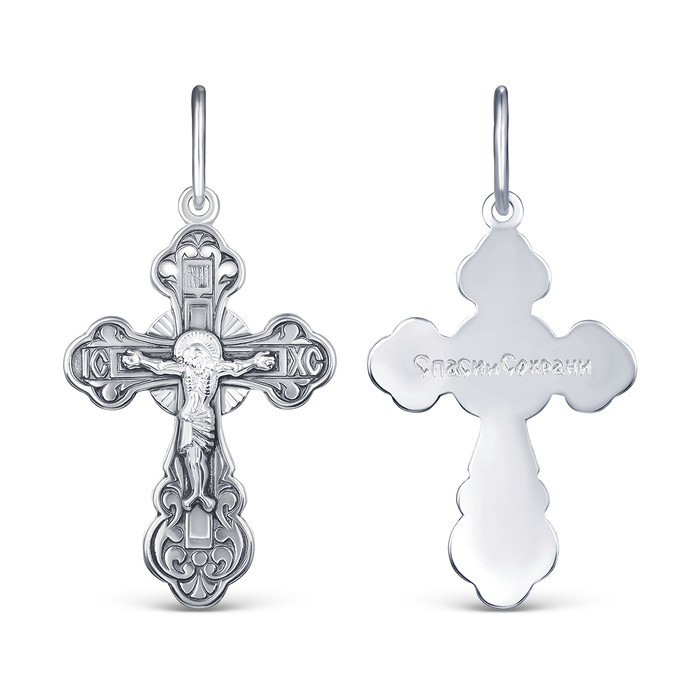 Совместные покупки Челябинск Ювелирные украшения и бижутерия Подвески — Крест православный из чернёного серебра - Спаси и сохрани 3,7 см 925 пробы 1-053