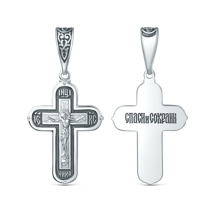 Совместные покупки Челябинск Ювелирные украшения и бижутерия Подвески — Крест православный из чернёного серебра - Спаси и сохрани, 4,4 см 00-0024-2