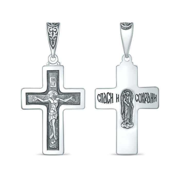Крест православный из чернёного серебра - Спаси и сохрани 4,9 см 925 пробы 00-00