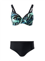 Лиф с мягкими и съемными  формованными вкладышами, обеспечивает комфортную поддержку и создает эффект идеально округлой груди. Бретели регулируются. Трусы «бикини» на широких завязках с низкой линией талии открывают бедра и подчеркивают длину ног.