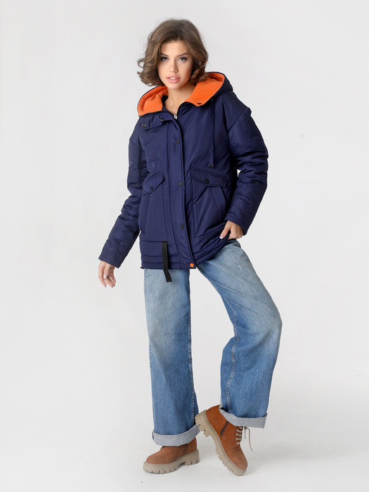 Модная куртка-парка прямого силуэта (легкий "оверсайз") с застежкой на двухзамковую молнию и кнопки на ветрозащитной планке. Воротник - стойка, переходящая в регулируемый капюшон. Прорезные карманы застегиваются на молнию. Есть внутренний кармашек, тоже на молнии. При желании можно скорректировать ширину изделия по низу с помощью затяжки, подчеркнув тем самым актуальный О-образный силуэт. Яркая отделка капюшона выгодно освежает образ в этой осенней куртке. Плащевая ткань имеет водоотталкивающую пропитку, которая выдержит небольшой осенний дождь или снег. Утеплитель нового поколения ALPOLUX, в состав которого входит натуральная шерсть, плотностью 150 гр/м защитит от холода и ветра.
