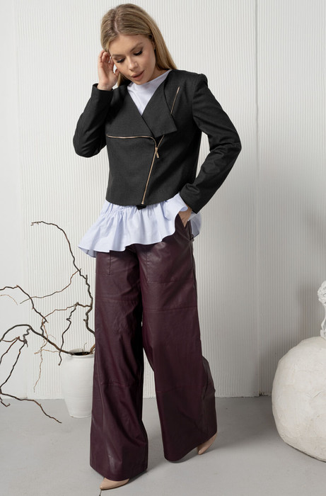 Укороченный   жакетик в стиле "косуха"из добротной костюмки. Изделие на подкладке, застежка - декоративная металическая молния.