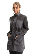 Куртка полуприталенного силуэта с капюшоном (капюшон не отстегивается). Молнии на карманах и центральная молния спираль (цвет-серебро), утеплитель-холкон (см.описание), плотность 150. Длина изделия 69 см, длина рукава 65 см.