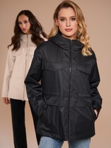Демисезонная куртка, утеплитель холкон (см.описание), плотность 100, рукав реглан, внутренний цветной воротник отстегивается, рукав 3/4 (на фото рукава свитера). Центральная и на карманах молнии пластмассовые. Длина изделия по спинке-61 см, длина рукава от горловины 57 см.