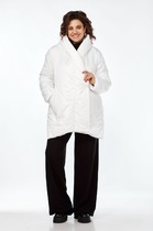 Куртка женская утепленная (до минус 10) из плащевой ткани, под съемный пояс из кожзаменителя, утеплитель изософт. Прямого силуэта, рукав втачной на спущенной пройме, с капюшоном, застежка спереди на молнию с двумя бегунками, по низу карманы с клапанами, сверху слева карман-обманка с нашивкой под ним. Изделие на подкладке.