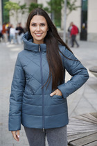 Стильная куртка прямого силуэта с оригинальным воротником стойкой и удобным капюшоном.Спущенный рукав,а так же резинка по низу изделия и рукава немного округляет и делает образ более женственным и мягким. Карманы расположены в рельефе переда и застегиваются на потайную кнопку.Такой вариант можно комбинировать с различной одеждой, он отлично дополнит повседневный гардероб. Длина по спинке - ок.66,длина рукава от горловины- ок. 72см. Рост 170 см. Р-ры 42-52 Состав: полиэстер 100%, утеплитель: Air Twin Light 100 г/m 2 Цвет:шалфей Цвет одежды может незначительно отличаться от оригинала.