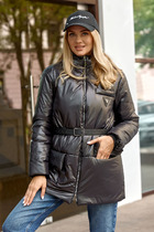 Куртка женская, О-образного силуэта с центральной застежкой на молнию. Спинка простая. Перед с боковыми карманами "с листочкой". Рукав-реглан . Воротник-капюшон. По низу куртки в подкладке обработана кулиса со шнуром и регулятором. Температурный режим до 0 градусов.