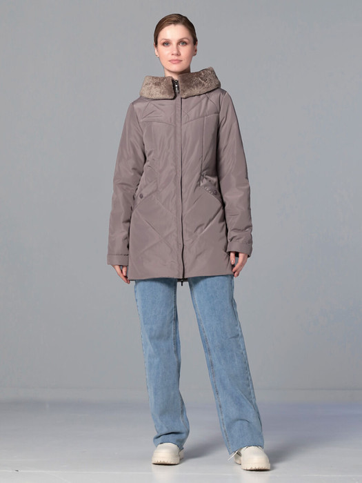 Удлиненная демисезонная куртка полуприлегающего силуэта подходит для девушек и женщин разной возрастной категории. Застежка - на двухзамковую молнию, которая позволяет расстегнуть куртку как сверху, так и снизу, регулируя тем самым ширину шага по необходимости.  Воротник - уютная стойка, переходящая в капюшон. Длину втачного рукава можно регулировать посредством отворота. Вместительные прорезные карманы, удобно расположенные в подрезах, застегиваются на кнопки. Есть внутренний кармашек на молнии. Отворот капюшона выполнен из мягкого эко-меха, который хорошо стирается на рекомендованном режиме и не меняет свой внешний вид после высыхания. Плащевая ткань, из которой выполнено изделие, имеет водоотталкивающую пропитку, выдерживающую небольшой  дождь, снег и ветер. Хорошо зарекомендовавший себя утеплитель "Холлофайбер", плотностью 200гр/м, защитит от холода. Подкладка в изделии выполнена из ткани в мелкую полоску.