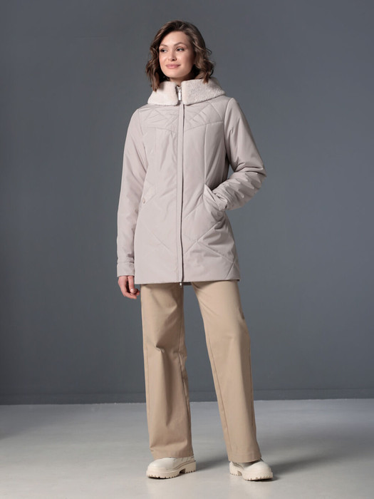 Удлиненная демисезонная куртка полуприлегающего силуэта подходит для девушек и женщин разной возрастной категории. Застежка - на двухзамковую молнию, которая позволяет расстегнуть куртку как сверху, так и снизу, регулируя тем самым ширину шага по необходимости.  Воротник - уютная стойка, переходящая в капюшон. Длину втачного рукава можно регулировать посредством отворота. Вместительные прорезные карманы, удобно расположенные в подрезах, застегиваются на кнопки. Есть внутренний кармашек на молнии. Отворот капюшона выполнен из мягкого эко-меха, который хорошо стирается на рекомендованном режиме и не меняет свой внешний вид после высыхания. Плащевая ткань, из которой выполнено изделие, имеет водоотталкивающую пропитку, выдерживающую небольшой  дождь, снег и ветер. Хорошо зарекомендовавший себя утеплитель "Холлофайбер", плотностью 200гр/м, защитит от холода. Подкладка в изделии выполнена из ткани в мелкую полоску.
