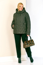 Куртка свободного кроя, длиной выше линии бедер. Спинка со средним швом. Перед с нагрудными вытачками, с прорезными карманами с листочкой. Рукава двушовные, втачные, длинные. Воротник на отрезной стойке. Застежка двубортная на петли и пуговицы. Куртка на подкладке.