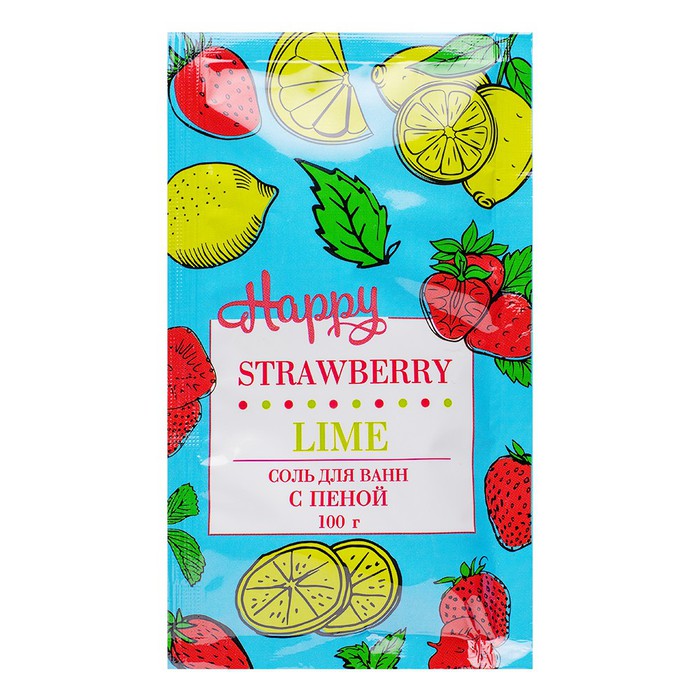 Клубника и лайм: какой дерзкий дуэт! Новая соль из серии "Happy" с пеной для расслабления и купания. Прими ванну и ощути на себе нежнейшие пузырьки пены и притягательный, "вкусный" аромат.