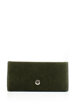 Кошелек женский выполнен из натуральной замши и натуральной кожи. Детали: кошелек закрывается на срытый магнит, 2 открытых отделения для купюр, 1 отделение для купюр на молнии, 2 кармана, 4отделения для визиток или карт, 1 отделение с прозрачным окошком для карты или проездного, 1 отделение на замке фермуар для монет. Фурнитура серебристого цвета. Упаковка: фирменная белая коробка.