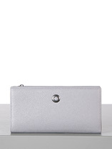 Кошелек женский выполнен из натуральной кожи. Детали: кошелек закрывается на магнитную кнопку, 2 отделения для купюр, 6 слот отделений для визиток или карт, 1 отделение с прозрачным окошком для карты или проездного, 2 кармана, 1 отделение на кнопке для монет. Фурнитура серебристого цвета. Упаковка: фирменная белая коробка.