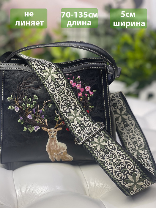 Ремень для сумок. Цвет фурнитуры серебряный.  Длина ремня (тесьма+ карабины) 137 см.