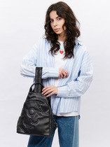 Рюкзак женский выполнен из экокожи. Детали: 2 регулируемые ручки по 102 см.  соединяющиеся в одну при помощи молнии, 2 маленькие ручки для держания в руке. Внутри изделия: 1 основное отделение на молнии, 2 открытых кармана, 1 карман для мобильного телефона, 1 карман на молнии. Снаружи изделия: 1 карман на молнии спереди, 1 карман на молнии на оборотной стороне. Брендированная подкладка из хлопка. Металлическая брендированная фурнитура серебристого цвета. В комплекте фирменный пыльник.