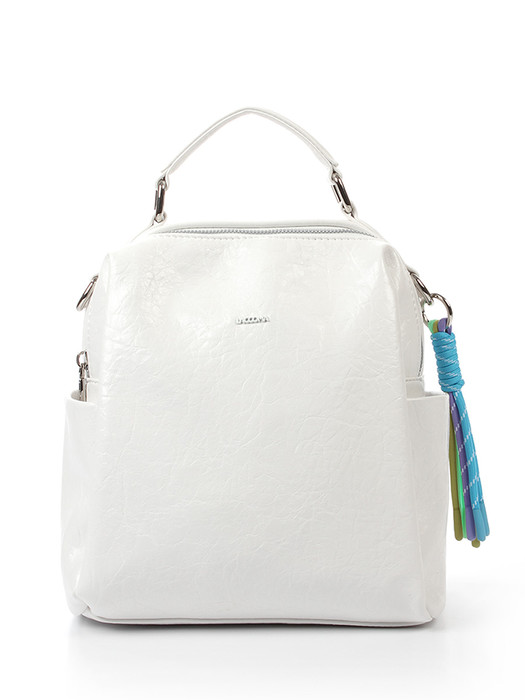 Конструкция рюкзака продумана до мелочей. Две укреплённые стропой съёмные регулируемые ручки длиной 85 см позволяют удобно держать аксессуар в руке или носить как рюкзак — это идеальный вариант для коротких перемещений или шопинга. А съёмная регулируемая ручка на плечо (135 см) позволят носить сумку через плечо. Такая многофункциональность делает модель незаменимой для активных женщин, которые ценят комфорт и удобство.