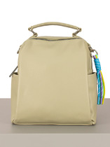 Рюкзак (сумка) женский выполнен из экокожи. Детали: две укреплённые стропой съёмные регулируемые ручки по 85 см, 1 съёмная регулируемая ручка на плечо 135см. Внутри изделия: 2 отделения на молнии, 1 карман для телефона, 1 открытый карман, 1 карман на молнии. Снаружи изделия: 1 карман на оборотной стороне на молнии, 2 боковых кармана. Брендированная подкладка из хлопка. Металлическая брендированная фурнитура. В комплекте фирменный пыльник.