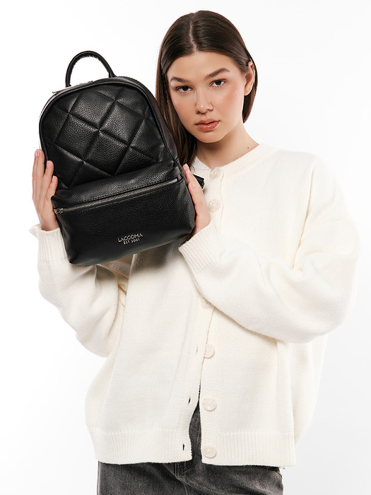 Женский рюкзак выполнен из мягкой эко кожи, фактура - натуральная кожа. Рюкзак подходит для работы, для деловых встреч, на выход, как повседневный рюкзачок, школьный ранец. Городской рюкзак LACCOMA практичен, изготовлен в России, усиленная брендированная металлическая фурнитура серебристого цвета добавляет индивидуальность. Детали: 2 укреплённые стропой регулируемые ручки 85 см, маленькая ручка для держания в руке. Внутри изделия: 1 основное отделение на молнии, 2 открытых кармана, 1 карман для мобильного телефона и 2 кармана на молнии. Снаружи изделия: 3 кармана на молнии на лицевой стороне и 1 карман на молнии на оборотной стороне. Брендированная подкладка из хлопка. В комплекте брендовый пыльник. Модель представлена в цветах: черный, белый, бежевый, серый, сиреневый, розовый, темно - бежевый. Купить рюкзак для города, как подарок девушке, дочери, любимой, подруге на день рожденья, 8 марта, день святого валентина, новый год. Классический модный дизайн 2022, популярный тренд сезона.