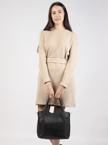 Сумка женская выполнена из экокожи. Детали: 2 съёмные регулируемые ручки узкая и широкая. Внутри изделия: 2 отделение на молнии разделены перегородкой в виде кармана на молнии, 1 карман на молнии, 1 карман открытый. Снаружи изделия: 1 карман на молнии сзади изделия. Брендированная подкладка из хлопка. Металлическая брендированная фурнитура золотистого цвета. В комплекте фирменный пыльник.