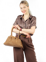 Сумка женская выполнена из натуральной замши и кожи. Детали: 2 ручки 60 см. Каркас сумки: жесткий. Внутри изделия: 3 отделения: 1 на молнии и 2 отделения на магнитных кнопках, 1 карман на молнии, 1 открытый карман. Подкладка из хлопка. Металлическая брендированная фурнитура серебристого цвета. В комплекте фирменный пыльник для хранения сумки.