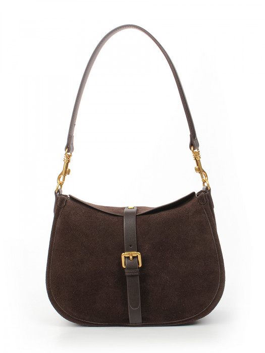 Сумка женская выполнена из натуральной замши. Детали: 1 короткая ручка 50 см, 1 отстёгивающийся регулируемый ремень от 110 см до 125 см. Внутри изделия: 3 отделения на магнитной кнопке: одно из отделений дополнительно закрывается на молнию, 1 карман на молнии, 1 открытый карман. Подкладка из хлопка. Металлическая брендированная фурнитура золотистого цвета. В комплекте фирменный пыльник для хранения сумки.