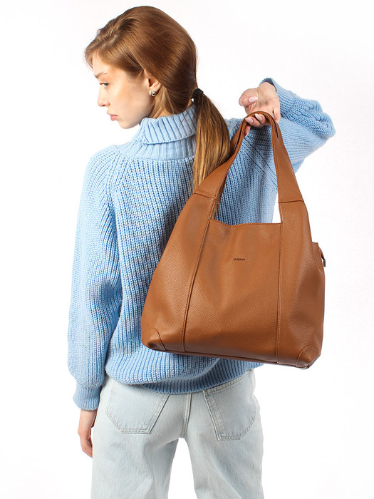 Сумка женская выполнена из экокожи. Детали: 2 ручки на плечо по 52 см. Внутри изделия: 2 отделения разделены перегородкой в виде кармана для документов на молнии, 1 открытый карман, 1 карман для мобильного телефона, 1 карман на молнии. Снаружи изделия: 1 карман на оборотной стороне на молнии. Брендированная подкладка из хлопка. Металлическая брендированная фурнитура серебристого цвета. В комплекте фирменный пыльник.