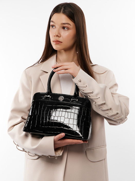 Сумка женская выполнена из экокожи. Детали: 2 короткие ручки по 33 см, 1 длинный регулируемый ремешок на плечо 120 см. Внутри изделия: 1 отделение на молнии и 2 отделения магнитных кнопках, 1 карман для документов на молнии, 1 открытый карман. Брендированная подкладка из хлопка. Металлическая брендированная фурнитура серебристого цвета. В комплекте фирменный пыльник.