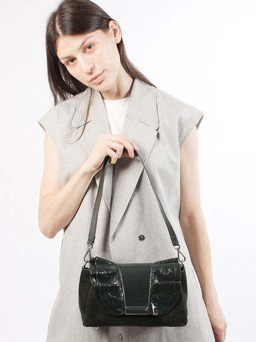 LACCOMA сумка Y2407F-темно зеленый натуральная замша, натуральная кожа