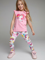 Легинсы прилегающего силуэта с цельнокроенным поясом на резиновой тесьме. Вдоль боковых линий настрочена декоративная тесьма. В качестве дополнительного декора использованы брендовые этикетки и флажки