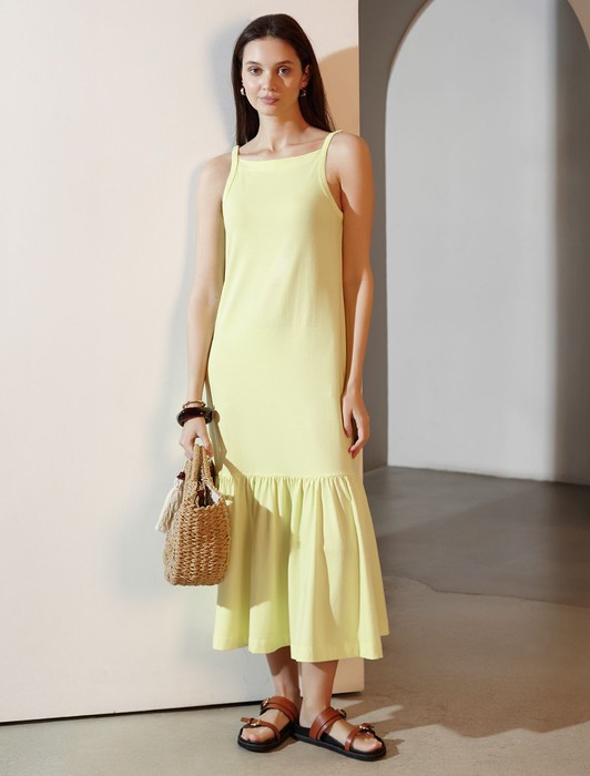 Состав: 92%Хлопок 8%ПУ Плотность: 170 Г/м2Стильное платье лимонного цвета выполнено из тонкого, гладкого хлопкового трикотажа плотностью 170 Г/м2. Летнее платье длины миди отичается современным кроем на тонких бретелях, что придает образу легкость и женственность. Благодаря тому, что материал тянется, платье хорошо садится по фигуре и обеспечивает комфорт на протяжении всего дня. Эластичное полотно мягко обхватывает силуэт, не стесняя движений. Легкое длинное платье гармонично подчеркивает достоинства и подходит на любую фигуру и большие размеры. Особое внимание привлекает волан по низу, который добавляет романтичности и воздушности. Такая деталь делает дизайн более интересным, добавляя динамики во время ходьбы. Приятный к телу хлопок не вызывает раздражения и подходит для ежедневной носки. Сочетание гладкой текстуры и эластичных свойств позволяет платью выглядеть аккуратно и стильно даже после множества стирок. Повседневное платье прекрасно комбинируется с разной обувью и аксессуарами, что делает его универсальным вариантом на каждый день или для особых случаев.