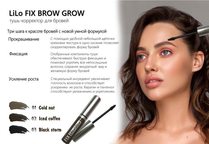 Быстросохнущая гелевая текстура туши поможет укротить все непослушные волоски, придать брови аккуратный вид и желаемую форму