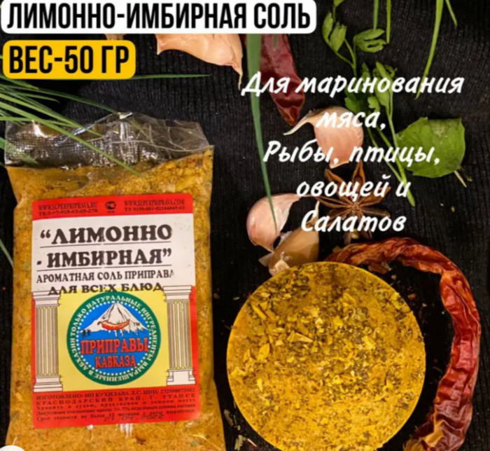 Лимонно-имбирная соль, это наша новинка. Не смотря на это наши постоянные покупатели уже успели оценить ее вкус и достоинства. «Лимонно-имбирная» содержит в себе самые необходимые Грузинские пряные травы и специи, лимон, свежий имбирь и по этому является универсальной приправой, которая прекрасно подходит для первых, вторых блюд, мяса, рыбы, птицы, салатов, соусов, маринадов и овощей.