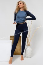 Лонгслив выполнен из качественного эластичного трикотажного полотна и скомбинирован из двух цветов, темного синего и василькового оттенка. Модель с прилегающей посадкой по фигуре оптимальной длины, имеет рукав реглан и округлую горловину.