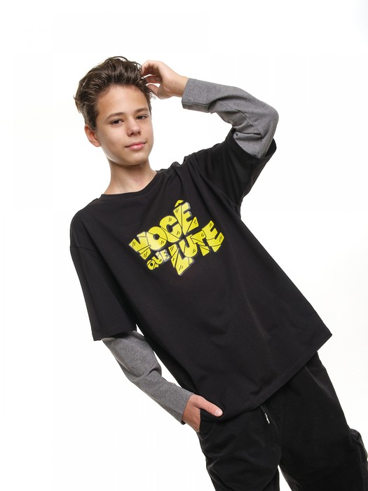 Совместные покупки Челябинск Детская одежда Футболки, майки — Mini Maxi Лонгслив с принтом (152-164см) 22-0229-2(4) черный/серый