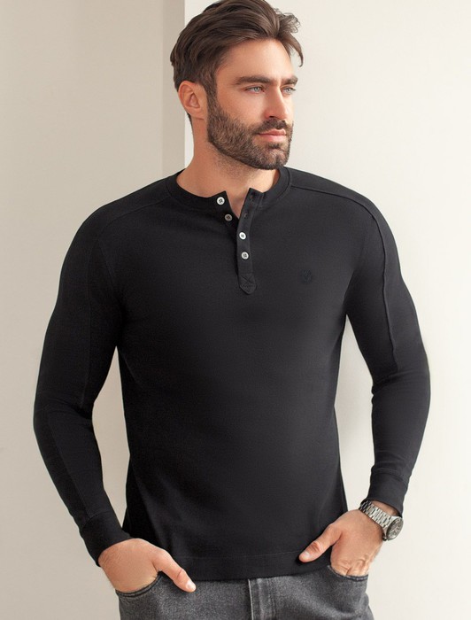 Совместные покупки Челябинск Мужская одежда Футболки — Лонгслив с воротником на пуговицах и декоративными швами из премиального хлопка
