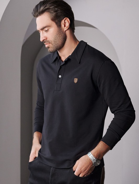 Состав: 95%Хлопок 5%ПУ Плотность: 240 Г/м2Стильный лонгслив черного цвета с воротником поло выполнен из премиального хлопка в сочетании с эластаном . Натуральная ткань обеспечивает легкость, воздухопроницаемость и приятные тактильные ощущения даже когда жарко, позволяет не перегреваться и поддерживает комфортный микроклимат в течение всего дня. Удобный отложной воротник на аккуратных пуговицах делает образ современным и стильным, а длинный рукав защищает руки при ветреной погоде. Поло хорошо садится по фигуре благодаря добавлению эластичных волокон — такой вариант подходит для мужчин любого роста и размеров, не стесняет движений и создает ощущение свободы и легкости.