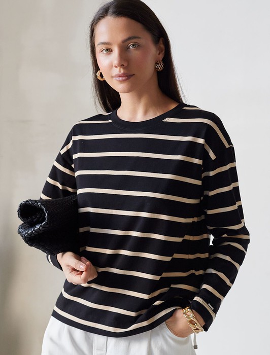Лонгслив в полоску из премиального хлопка с эластаном