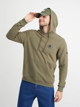 Мужское худи прямого силуэта, слегка посаженное на пояс. Выполнено из трикотажного футера с теплым подчесом. Горловина круглая, с уютным капюшоном, который спереди идет внахлест. Рукава длинные, на манжетах. Есть вместительный карман-кенгуру. Слегка спущенная линия плеча и немного углубленная пройма дарят свободу движений. Отличное худи для стильных образов!