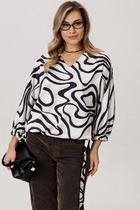 Блуза прилегающего силуэта на тонких бретелях. Бретели с регулировкой (на кольца и регуляторы пластик 10мм). Блуза на подкладке из основного полотна. На детали переда рельефы. Спинка со сборкой на эластичную тесьму по центральной детали спинки (внутр. 6мм).