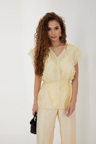 Женская блузка прямого силуэта — это сочетание элегантности, комфорта и практичности. V-образная горловина визуально вытягивает силуэт, подчеркивая линию шеи и декольте, а свободные длинные рукава и спущенное плечо придают образу расслабленную женственность. Разрезы в боковых швах добавляют легкости и свободы движений, делая модель особенно удобной в носке. Особое внимание заслуживает смесовый тенсель — материал, сочетающий в себе натуральность и технологичность. Он производится из древесной целлюлозы, отличается шелковистой текстурой, прекрасно дышит, обладает высокой гигроскопичностью. Благодаря добавлению других волокон, ткань становится более прочной, устойчивой к сминанию и износу, сохраняя при этом мягкость и струящуюся текстуру. Такая блузка подойдет как для офиса, так и для повседневных образов — легко сочетается с юбками, брюками или джинсами.