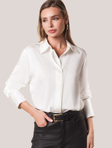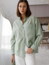 Блузка женская прямого силуэта из сатиновой ткани. Горловина круглой формы, в горловину втачан стояче-отложной воротник. Центральная застежка на пуговицы.